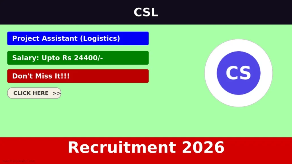 First, visit the official CSL website and locate the recruitment section. Next, open the notification for Project Assistant Recruitment 2026 and carefully read the eligibility criteria and instructions. After confirming eligibility, candidates should complete the online application form, upload the required documents, and submit the application before the last date.